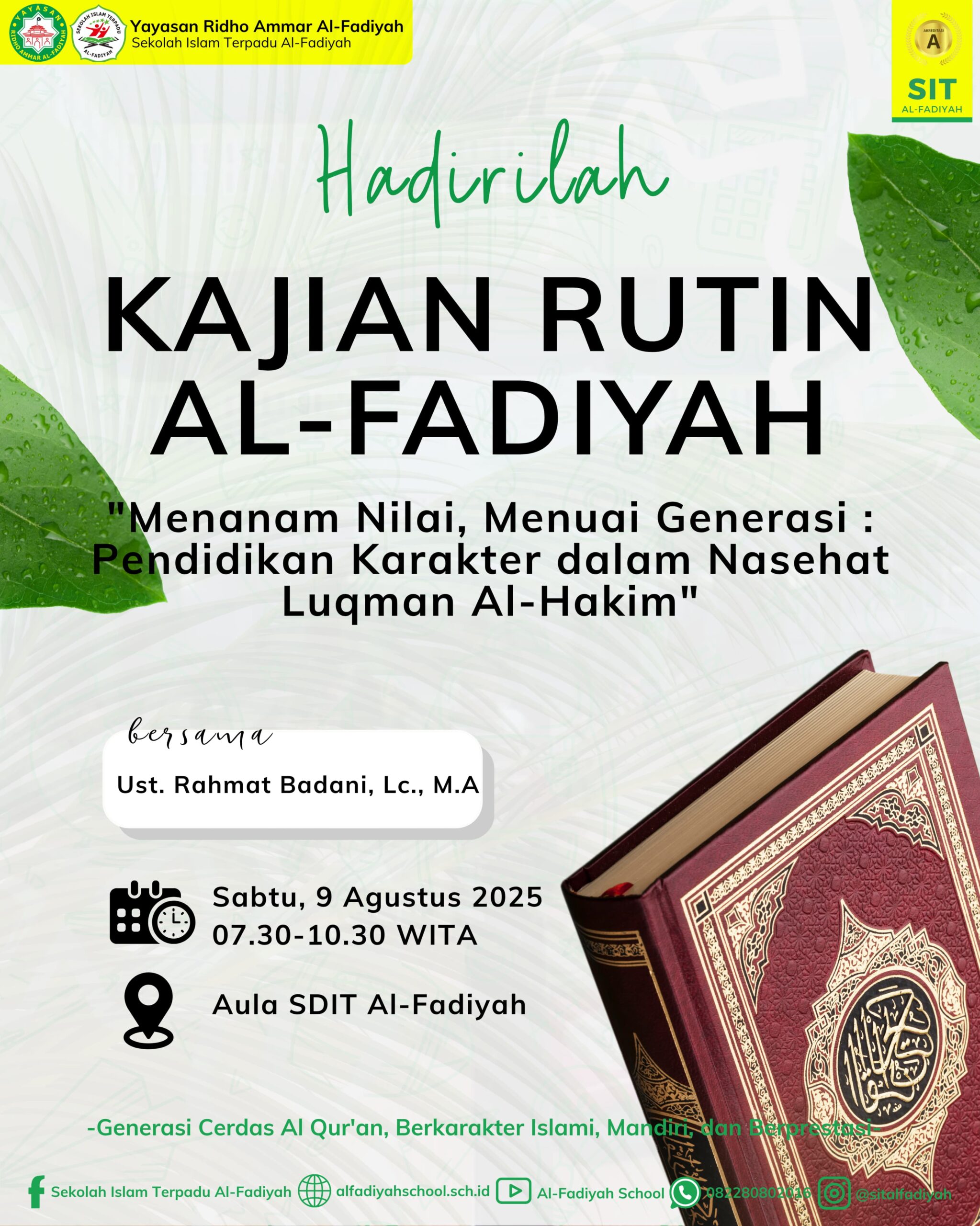 Dua siswa SDIT Al-Fadiyah berhasil menorehkan prestasi membanggakan dalam ajang panahan tingkat kota. Muh. Ar Abid Ransi Putra Fadli meraih Juara 4 pada Lomba Panahan Santri Expo Hifdzil Qur’an dan Keterampilan Tingkat SD/Sederajat Kota Makassar 2025, sedangkan Azkayra Malika Zahra meraih Juara 2 pada Open Archery Competition (OPEC) 2025 tingkat SD kelas 1–3. Santri Expo […]