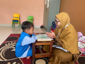 Anak-anak diberikan buku pembelajaran yang memuat huruf Hijaiyya, di mana mereka diminta untuk menebalkan setiap huruf yang mereka pelajari. Kegiatan ini tidak hanya mengenalkan bentuk dan cara penyebutan huruf, tetapi juga mengajarkan mereka tentang pentingnya mengenal Al-Quran sejak usia dini.