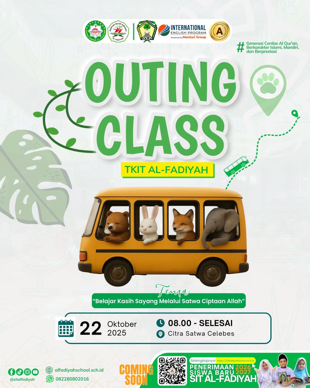 Dalam rangka menumbuhkan rasa kasih sayang terhadap sesama makhluk ciptaan Allah SWT, TKIT Al-Fadiyah akan melaksanakan kegiatan Outing Class dengan tema: