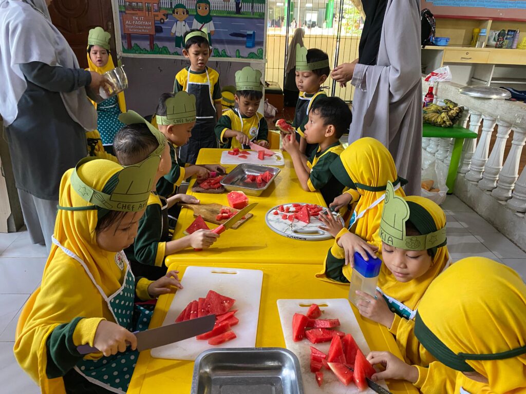 TK Islam Terpadu (TKIT) Al-Fadiyah menggelar kegiatan Cooking Class sebagai bagian dari pembelajaran tematik yang menyenangkan sekaligus edukatif. Kegiatan berlangsung di Kitchen Lab TKIT Al-Fadiyah pada Rabu (24/9/2025) mulai pukul 08.30 WITA.