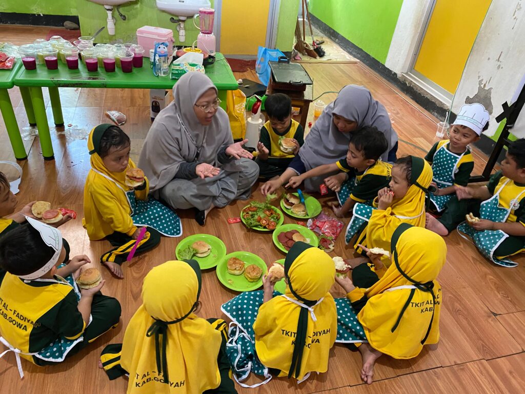 Dengan mengusung tema “Ceria Memasak, Bersyukur Atas Nikmat Allah”, kegiatan ini diikuti oleh seluruh siswa TKIT Al-Fadiyah. Para peserta belajar membuat berbagai menu sederhana seperti jus buah, roti bakar, salad buah, es buah, donat, dan burger.