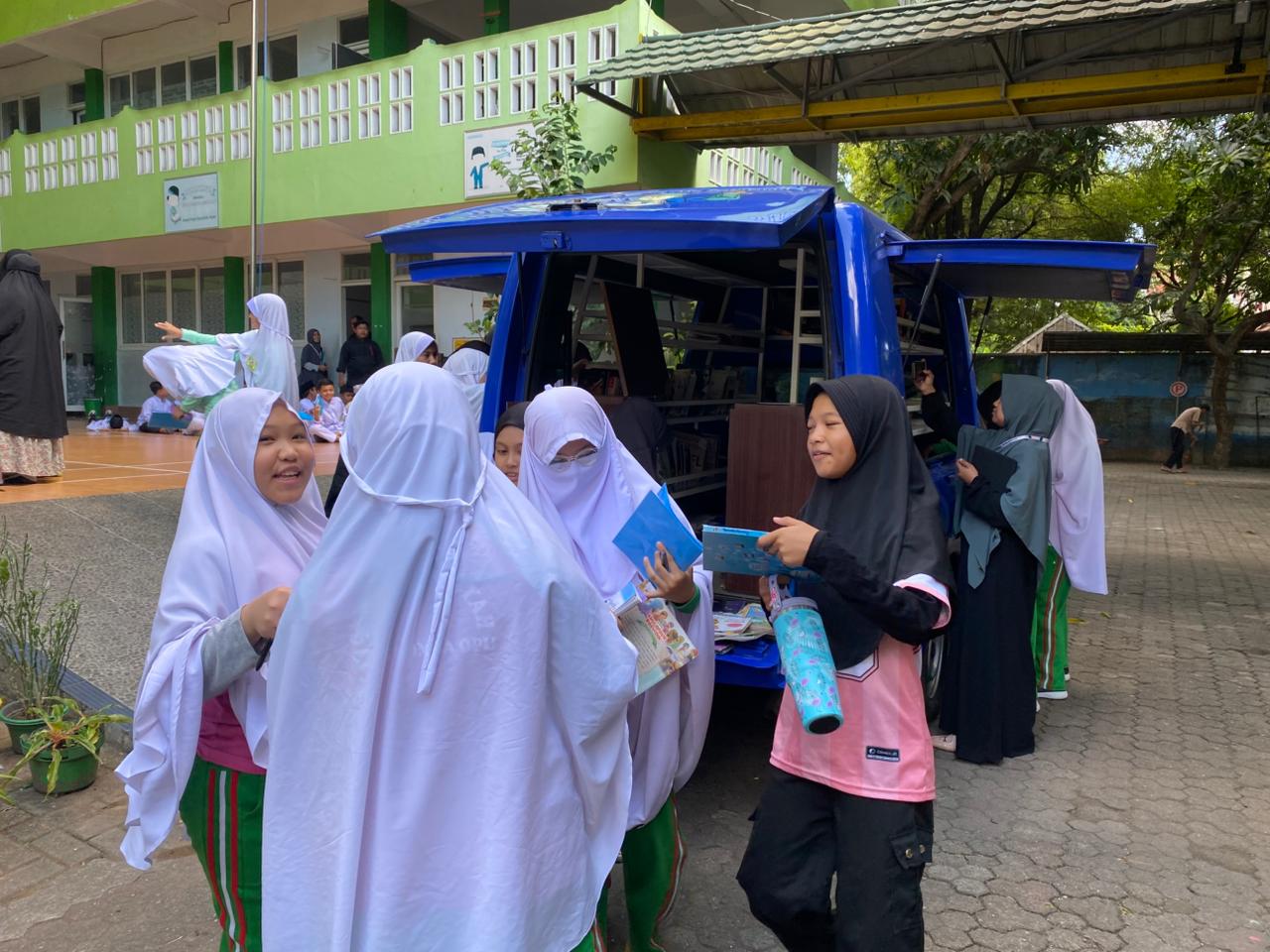 Kehadiran mobil perpustakaan keliling tersebut membawa berbagai koleksi buku bacaan anak, mulai dari cerita rakyat, Ilmu sosial, hingga kisah inspiratif yang menarik minat baca siswa. Melalui program ini, siswa diajak untuk lebih mengenal dunia literasi secara menyenangkan dan interaktif.